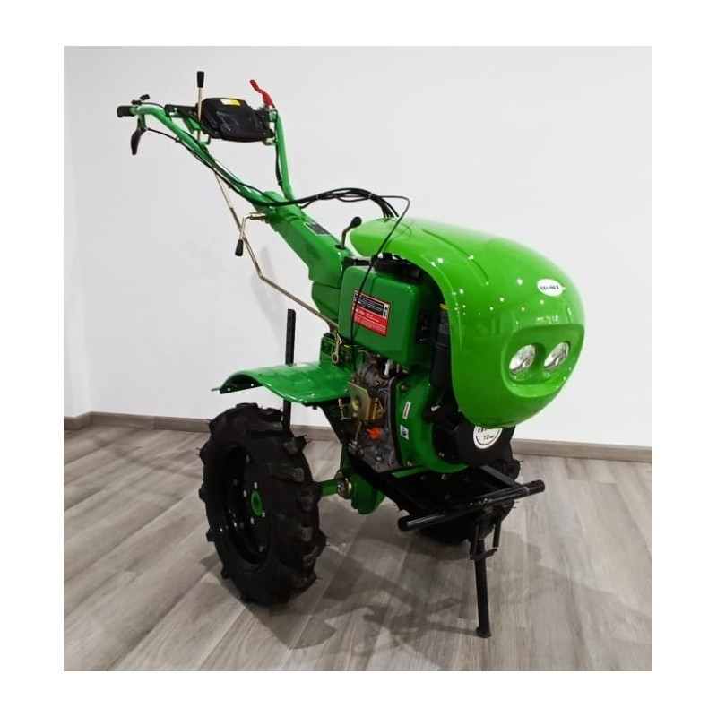 Motocultorul are o latime de lucru de 130 cm, fractionabila la 85 cm. Echipat cu un motor diesel puternic OHV de 10 CP cu pornire electrica, la cheie. Ghidonul este reglabil pe inaltime, cutia de viteze in intregime mecanica (fara curele), are priza de putere si doua viteze inainte + una inapoi, selectabile prin intermediul schimbatorului de viteze. Ambreiajul este solid, cu discuri de frictiune in baie de ulei. Rezervorul de combustibil generos de 5.5 l permite o autonomie mare. Productivitatea teoretica a motocultorului este intre 500 si 1000 mp/ora, in functie de conditiile de lucru si viteza de inaintare.